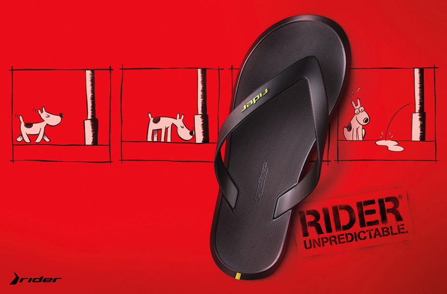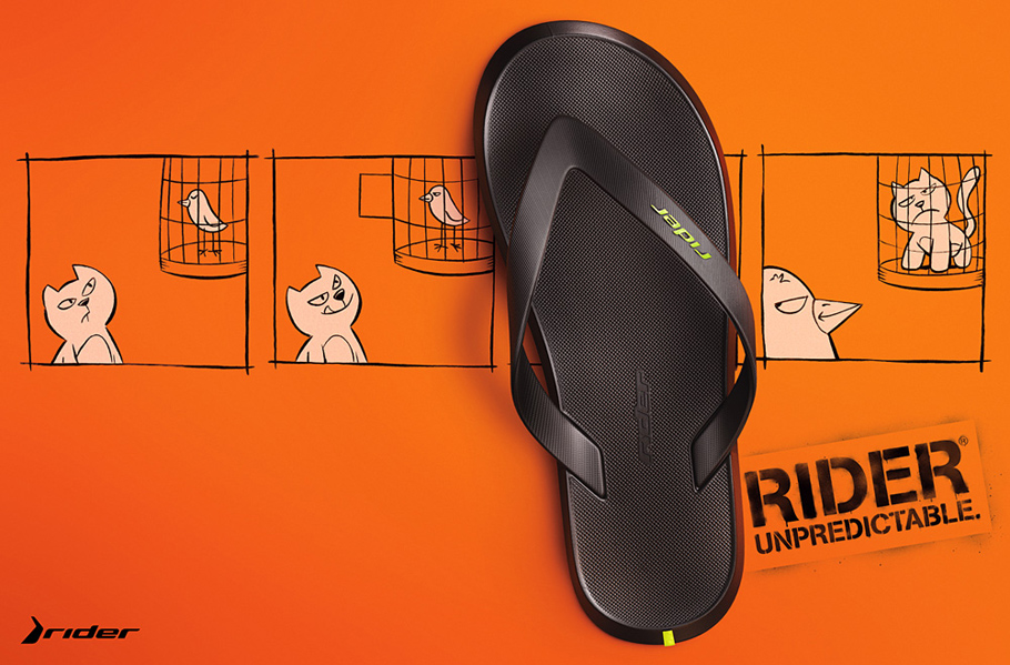 Campanha criada pela Africa para a Rider que será veiculada em sete países. Exibe desenhos feitos pelo cartunista Flávio Luiz e a assinatura Unpredictable (Imprevisível).
