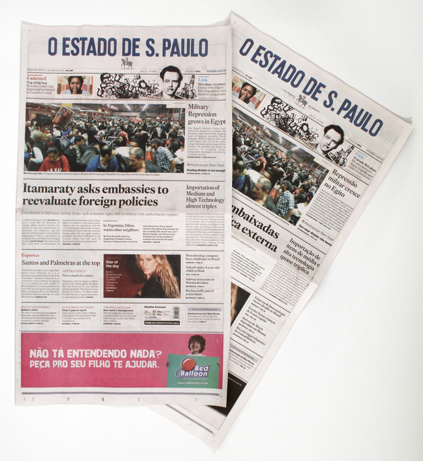 Com criação da Ogilvy, a escola Red Balloon deixou a capa do jornal O Estado de S.Paulo deste domingo dia 30/01 em inglês.