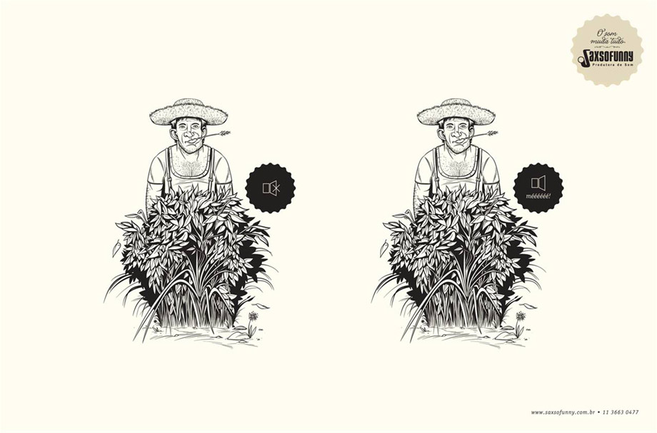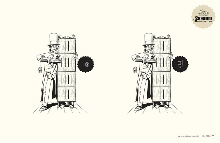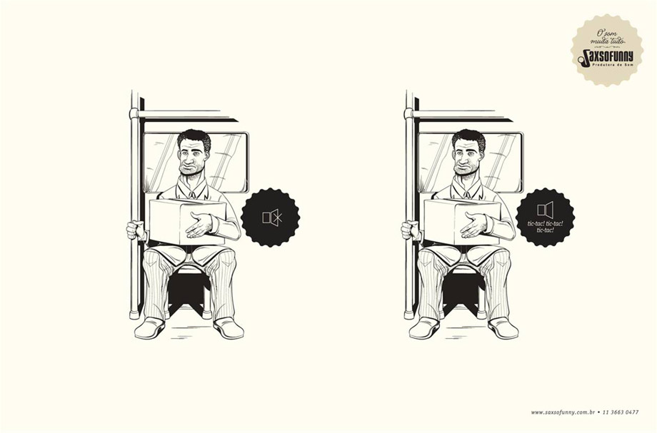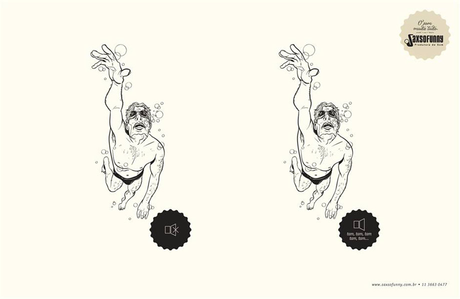 Genial a campanha criada pela DM9DDB para a produtora Saxofunny. Apesar de ser um anúncio impresso, mostra claramente que o som muda toda a compreenção de uma peça.