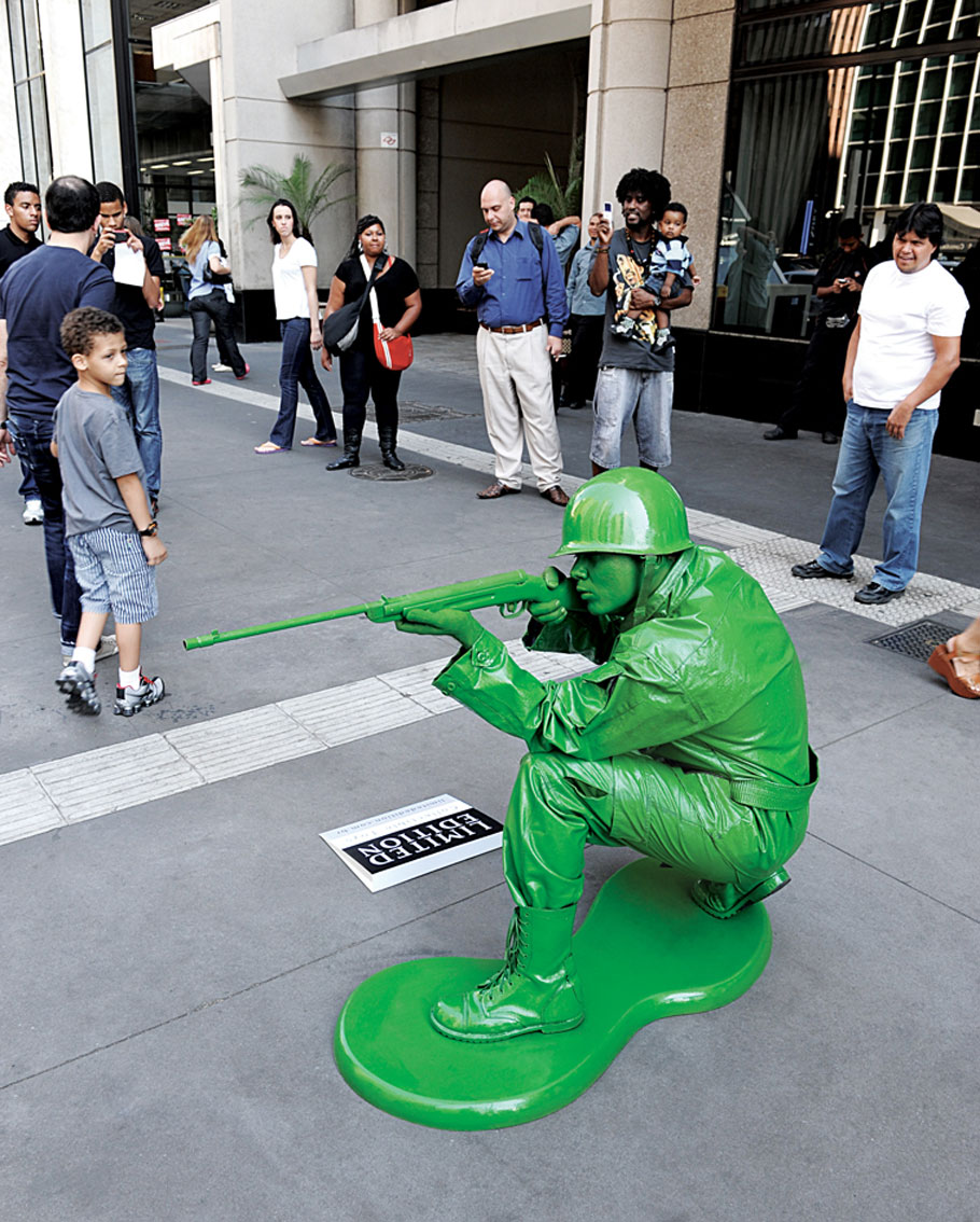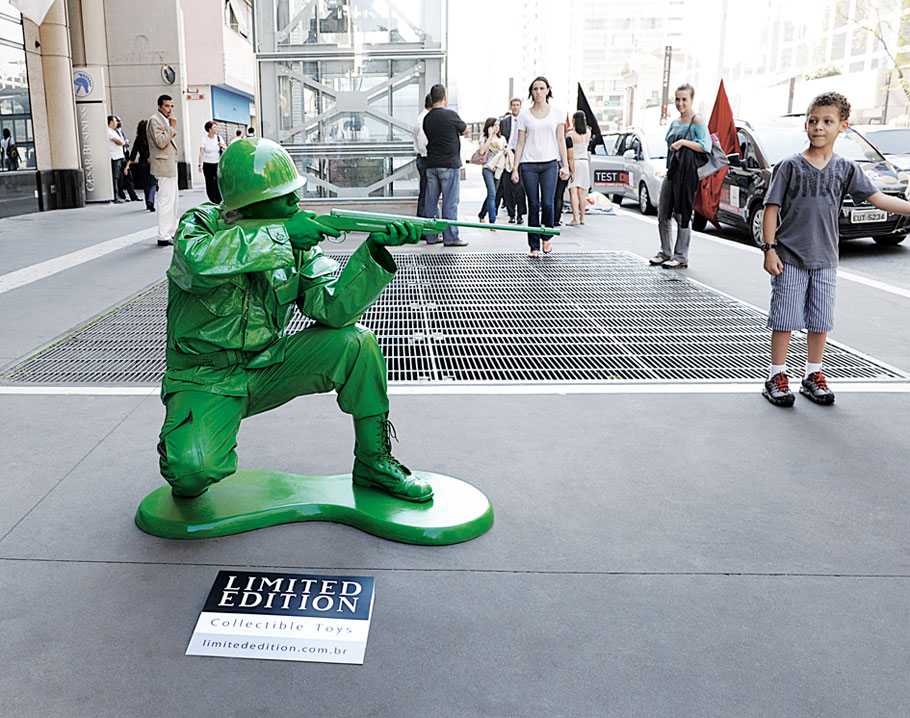 A agência Age Isobar espalhou pela região próxima à loja Limited Edition estátuas vivas que imitavam os clássicos soldadinhos de plástico.