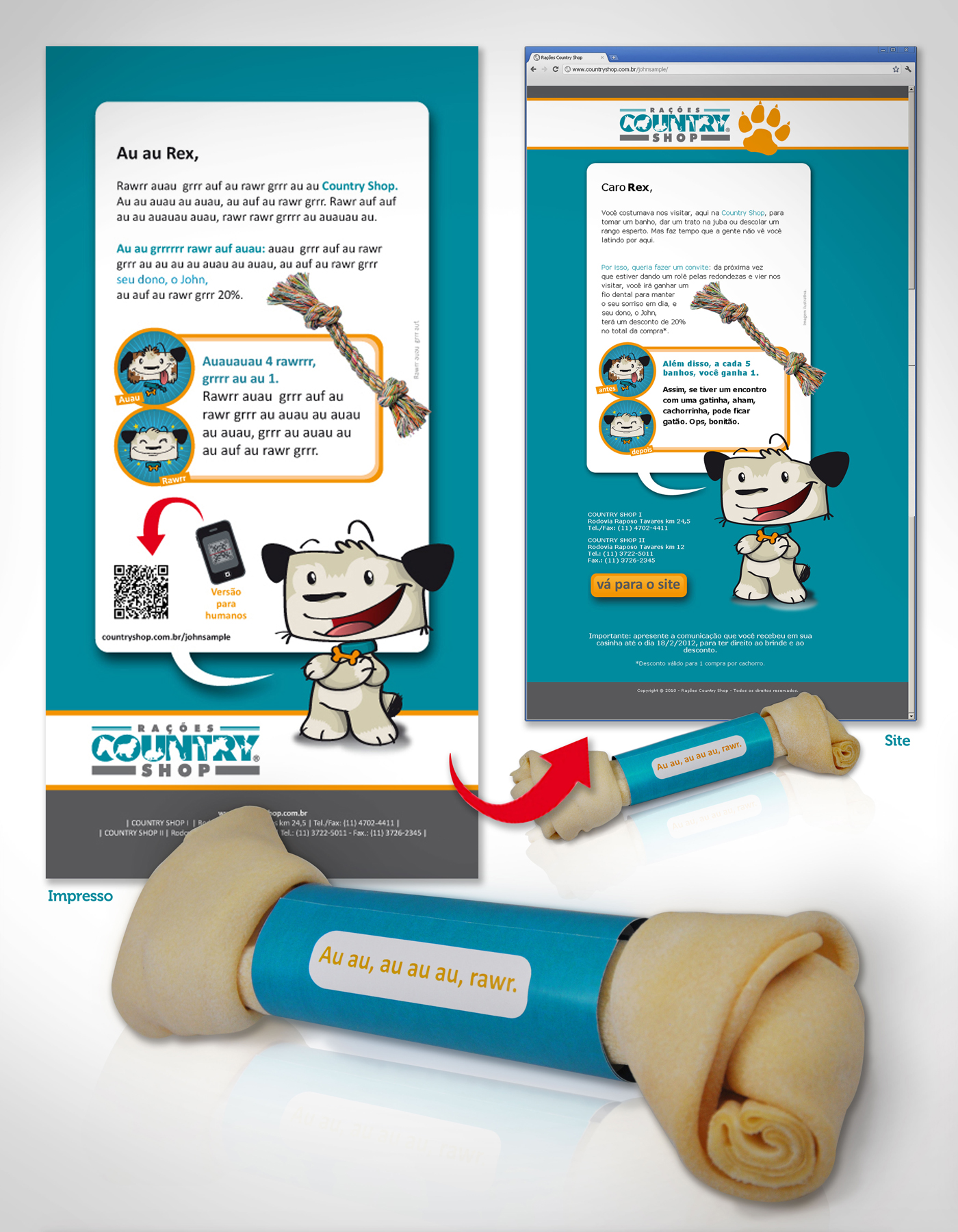 A e|ou criou uma mala direta enviada diretamente para cães, com o objetivo de divulgar promoção da Rações Country Shop.