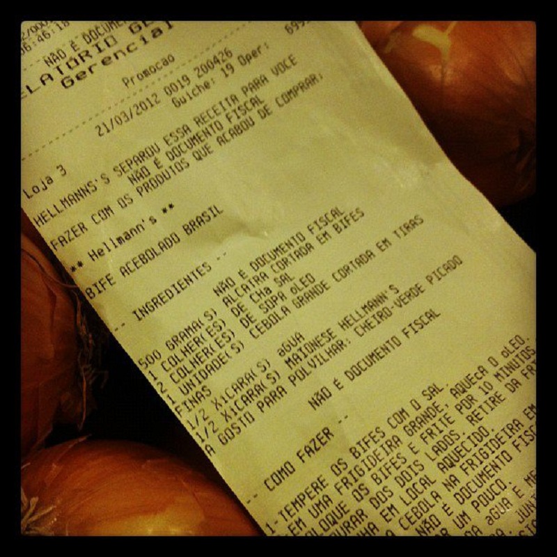 Todos os consumidores que compram Hellmann’s no local recebem, na nota fiscal do caixa, uma receita que leva a maionese e outros produtos adquiridos.