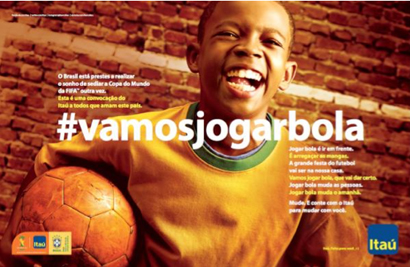 O Itaú, patrocinador oficial da Seleção Brasileira de Futebol e da Copa do Mundo da FIFA 2014, lança em todo o país a campanha “Vamos jogar bola”. Com este convite, o banco aposta no poder transformador do futebol e convoca a todos a acreditar nas mudanças e trabalhar para realizá-las.