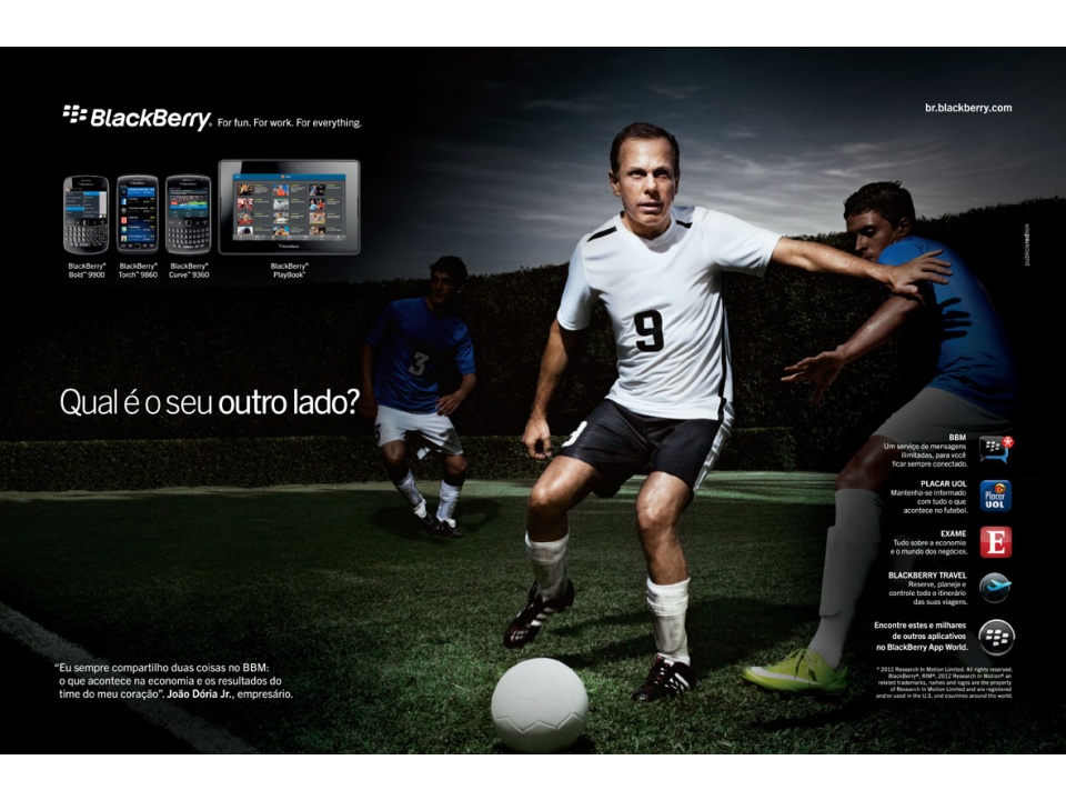 A Publicis Red Lion criou para a Research In Motion (RIM), fabricante dos smartphones BlackBerry e do tablet BlackBerry PlayBook, a campanha “Qual é seu outro lado?”, exclusivamente para o mercado brasileiro.
