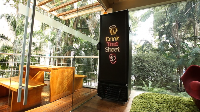Os seis escritórios da JWT e a Agência CASA em São Paulo, Curitiba e Rio de Janeiro agora têm “Drink Time Sheet”, uma geladeira trancada eletronicamente, abastecida por cerveja e outras bebidas e conectada ao banco de dados do time sheet.