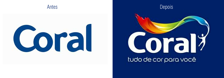 A marca de tintas Coral apresenta sua nova identidade visual. Mais colorido, o logotipo tem quatro principais mudanças: nova fonte, parecida com o anterior só que de estilo mais moderno; adição de uma figura humana com o objetivo de convidar o consumidor a pintar; novo elemento gráfico na parte de cima do logo, no formato de uma “onda de cor” em movimento, remetendo ao dinamismo e transformação; variedade de cores.