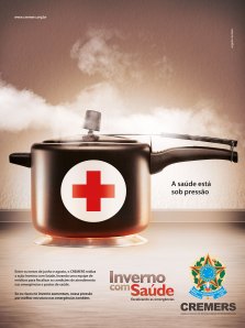 Como ideia de campanha, a agência representou, de forma simples e direta, a situação de pressão em que se encontra o atual sistema de saúde, prestes a “estourar” a qualquer momento. A panela de pressão, comorepresentação gráfica, e o slogan “A saúde está sob pressão”, demonstram a importância do papel desempenhado pelo CREMERS ao fiscalizar as emergências. A campanha terá veiculação nos meios jornal, rádio, OOH (Out OfHome) e internet. Uma das peças em destaque na campanha é um outdoor especial. Impactante e surpreendente, este painel tem um mecanismo embutido que simula o vapor liberado por uma panela sob alta pressão.