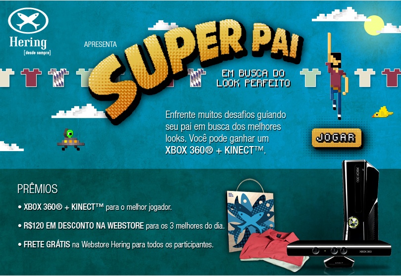 Para o Dia dos Pais da Hering, a Naked Brasil criou o game retrô 8 bit, chamado “Super Pai”, que poderá ser jogado por todos os fãs da marca no Facebook.