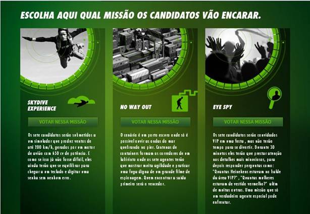 Após anunciar sua nova campanha mundial com James Bond, o 007, a Heineken® anuncia nessa sexta-feira, 28, o sétimo participante do “Crack the Case Challenge”, mas ainda dá tempo de se inscrever, basta entrar na fan page da marca e se cadastrar. O escolhido irá juntar-se aos seis outros participantes para executarem a missão escolhida pelos fãs da Heineken® no Facebook.
