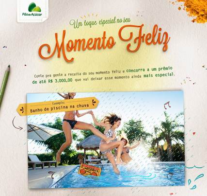 Ficará no ar até o dia 19/10 na fan page do Pão de Açucar o aplicativo do concurso cultural “Um toque especial no seu momento feliz”.