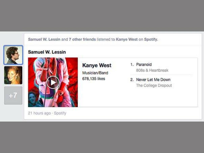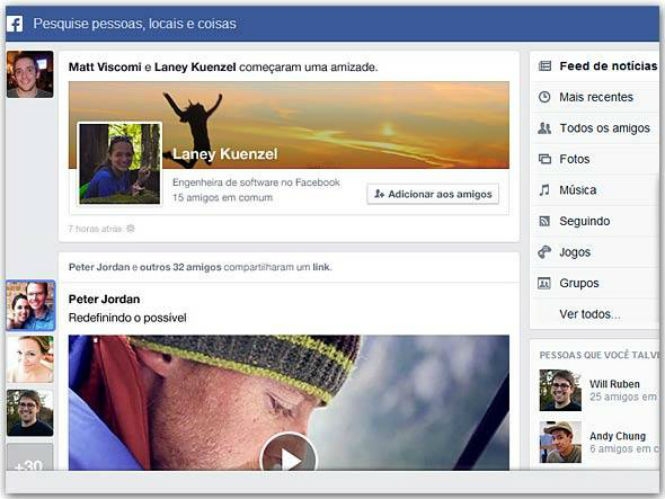 Aqui vemos outro exemplo de um dos feeds de notícias especializados do novo Facebook. Escolhendo o tema Música, o usuário pode ver o que seus amigos estão ouvindo e as novidades relacionadas com música. Escolhendo Fotos, serão mostradas apenas as fotos publicadas pelos amigos e por páginas que o usuário curtiu.