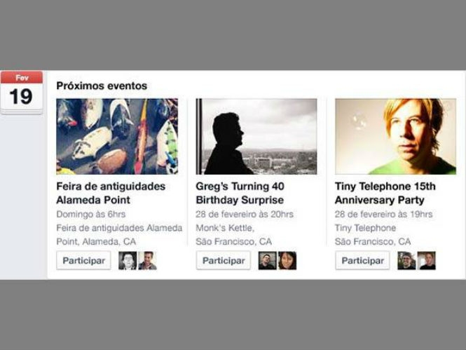 Eventos com data marcada passam a ser exibidos lado a lado, como nesta imagem. É uma forma de o Facebook aproveitar a coluna central mais larga que é parte do novo layout.