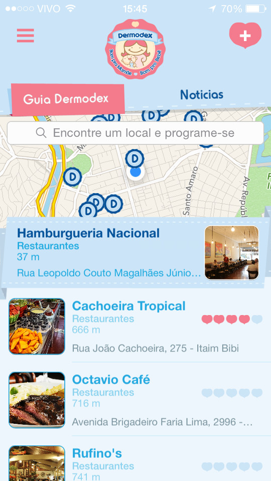 É possível ter uma vida social ativa com qualidade após a maternidade. Há muitas opções de lazer que oferecem infraestrutura adequada para receber mães e bebês. Dermodex, a marca que também cuida de quem cuida do bebê, apresenta um aplicativo que indica 250 estabelecimentos com estrutura adequada para receber mães e filhos, entre shoppings, parques, restaurantes, hotéis e locais de passeio, concentrados nas cidades de São Paulo e Rio de Janeiro. A criação desse projeto, que foi realizado em parceria com a equipe do Guia 4 Rodas, da Editora Abril, é da agência Fischer, responsável pela comunicação da marca.