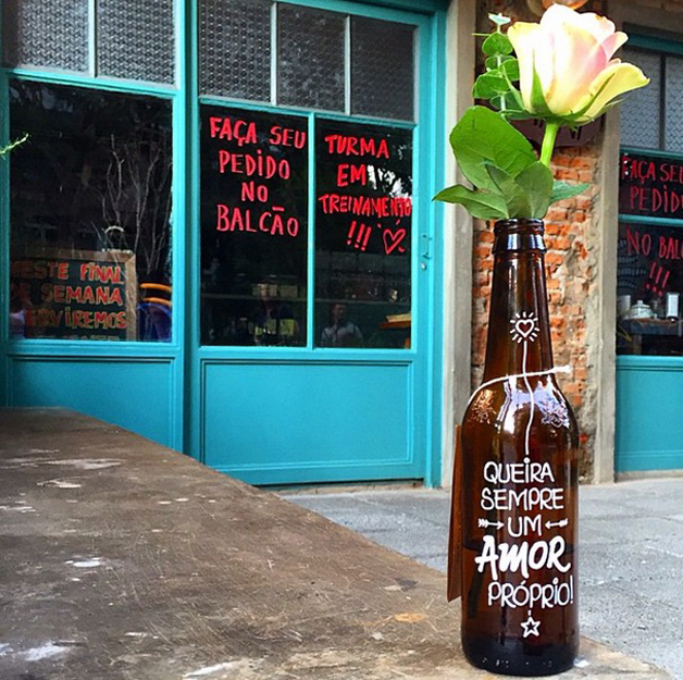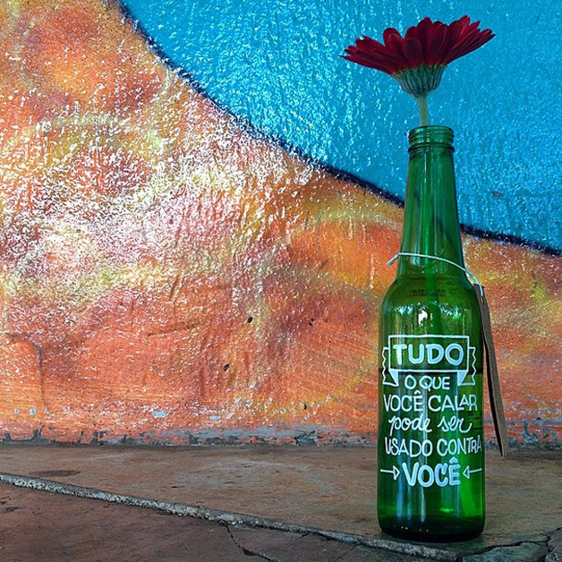 As frases, “unidas pelos meus sentimentos e engarrafadas pelas minhas mãos“, como afirma o artista, são escritas diretamente no vidro e a peça é sempre acompanhada de belas flores. Na conta do projeto no Instagram, Novello posta a foto de cada garrafa que deixa por São Paulo e marca o endereço – para quem quiser, basta correr e encontrar a sua.