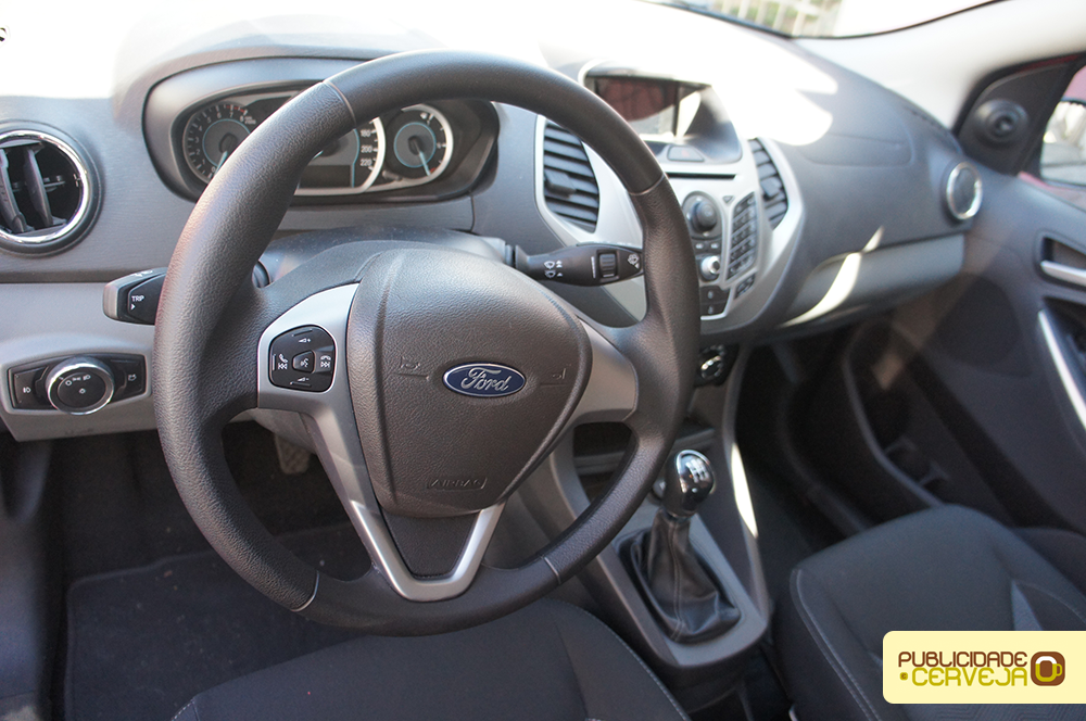 O novo Ka é muito gostoso de dirigir. A direção elétrica é precisa e a suspensão firme oferece boa estabilidade. Possui também o assistente de partida em rampas, que segura o carro no arranque, sem a necessidade de freio de mão. A diversão na cabine fica por conta dos sistema de entretenimento Sync, no qual um dos destaques é a leitura e envio de mensagens SMS por comando de voz. O espaço interno está muito maior que os modelos anteriores. Na parte central do painel e uma série de botões do sistema Sync (na versão avaliada). Na versão SE, o buraco onde ficaria a tela da central multimídia, virou um suporte para apoiar o smartphone, apenas. . Porém, falta de apoio de cabeça e cinto três pontos no meio do banco de trás e a regulagem automática dos retrovisores.