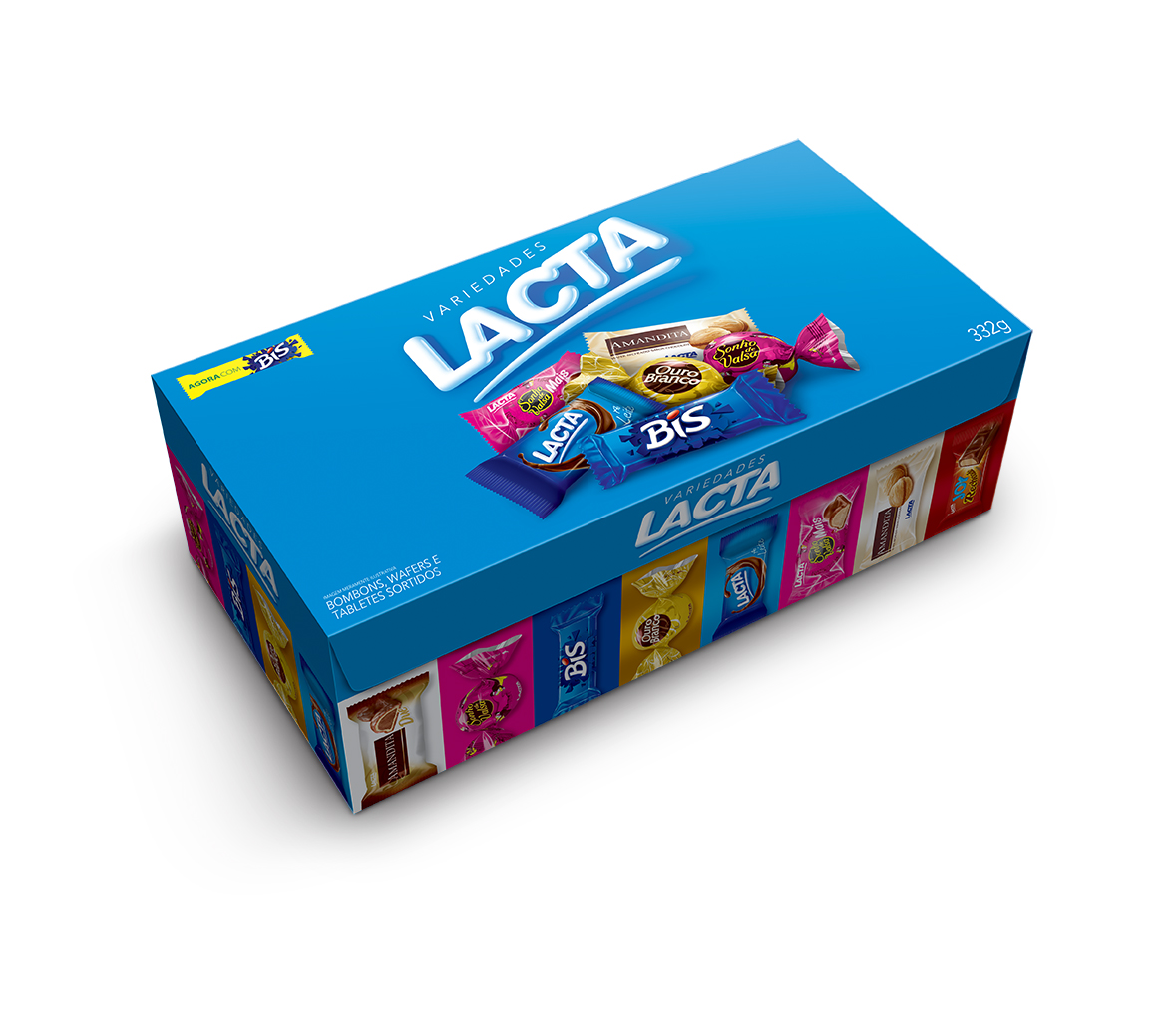 Outra novidade para os fãs de Lacta é que o tradicional chocolate Bis passa a fazer parte da caixa de bombons sortidos. A nova embalagem já está disponível em todo o país, na versão de 325g