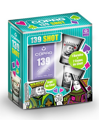 Quem não conhece o tradicional baralho 139? O carro-chefe da Copag, reconhecido como o baralho mais tradicional do Brasil em circulação, agora chega ao mercado com dois copos de shot. Com a figura do Rei e da Rainha, os shots seguem com um baralho com 55 unidades de cartas.