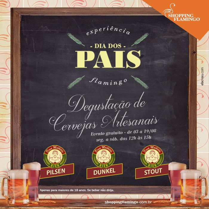 O Dona Mathilde Bier, marca de cervejas artesanais produzidas conforme a lei da pureza alemã de 1.516, será o principal destaque da programação comemorativa de Dia dos Pais do shopping Flamingo de Alphaville, São Paulo. Destacado como “Experiência Dia dos Pais Flamingo”, o evento dá chance aos clientes de mergulharem na temática das cervejas artesanais com workshops, dicas e degustação. A programação vai de 3 a 19 de agosto, sempre das 12h às 15h.