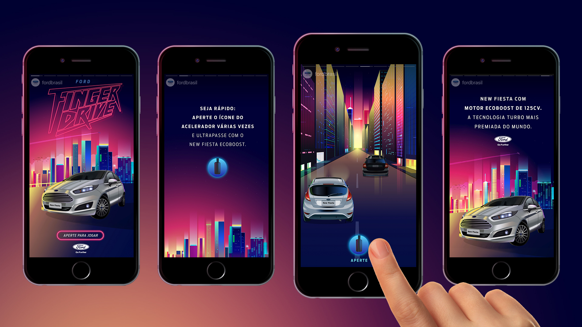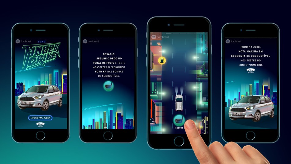 Conhecer mais sobre economia de combustível, tecnologias autônomas ou a potência do motor virou diversão no Instagram. É que a Ford, em ação assinada pela GTB, lança um game para o Stories, ferramenta de compartilhamento de momentos da rede social: o Ford Finger Drive.