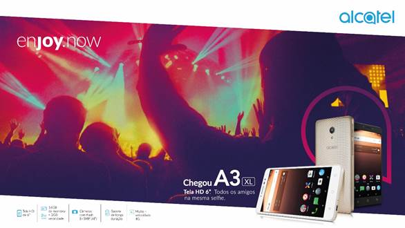 Alinhada com as tendências e necessidades do consumidor brasileiro, a Alcatel, marca de dispositivos móveis da TCL Comunicação, traz ao Brasil o A3 XL, o mais recente smartphone de tela grande da marca, apresentado durante o Consumer Electronics Show (CES) em janeiro deste ano, em Las Vegas (EUA).