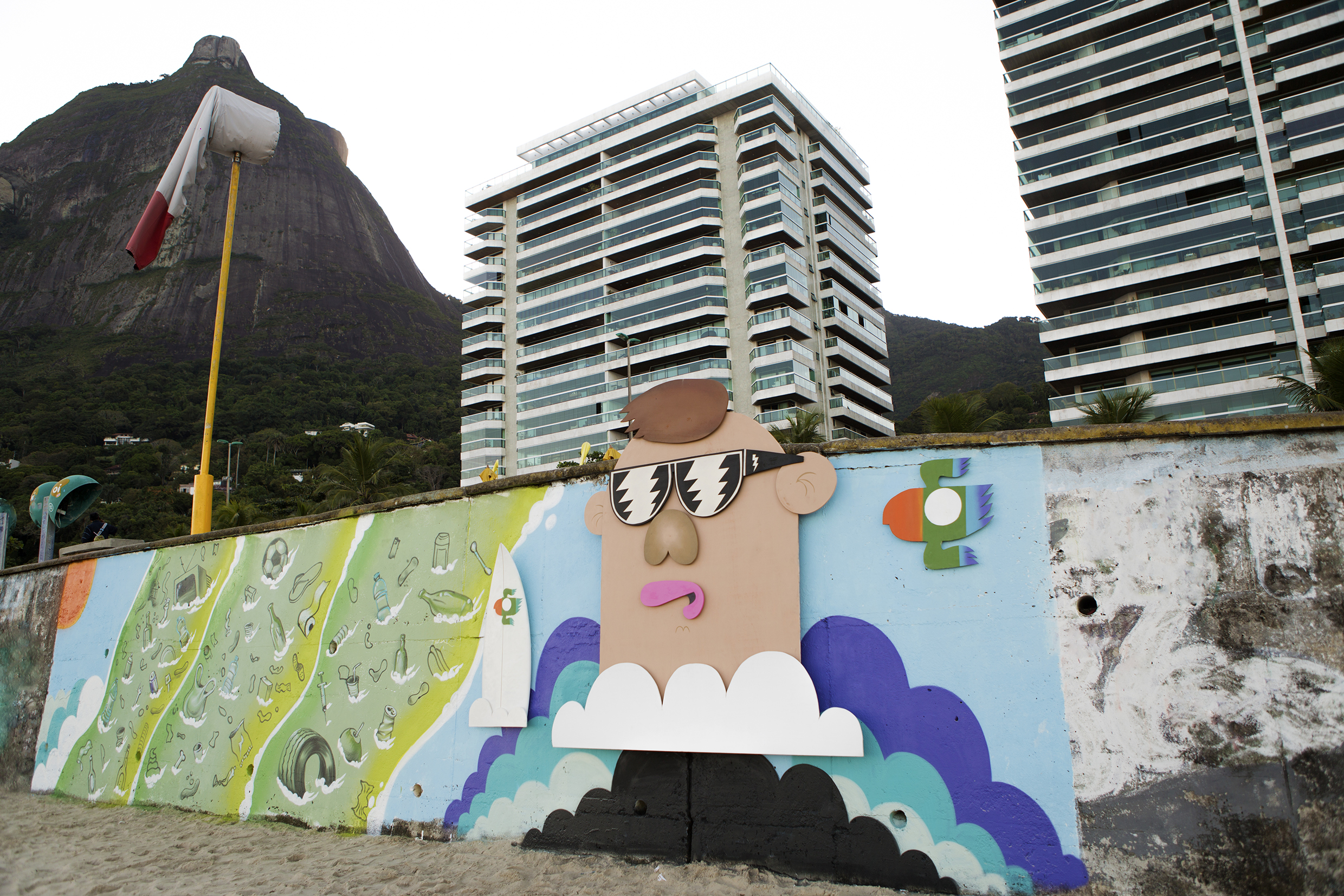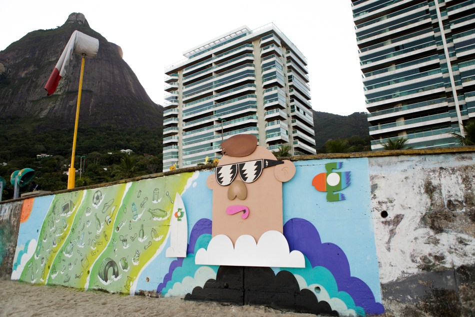 Localizada no calçadão da praia de São Conrado, no Rio de Janeiro, a arte de Rodrigo Villas – “Não deixe o ‘é só uma garrafinha’ vencer” – é uma aplicação de pintura em madeira e grafite para alertar que praias limpas é responsabilidade de todo mundo, não só de quem surfa e sente isso na pele.