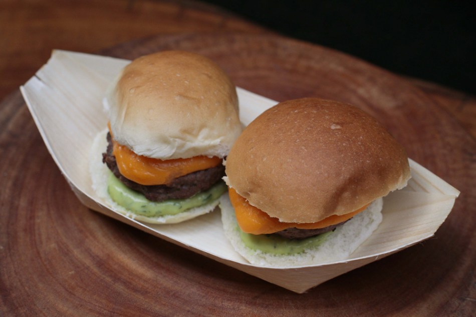 Mini pão de batata, suculento hambúrguer de fraldinha temperado com cebola, alho, pimenta do reino e sal. Finalizado com maionese de ervas.