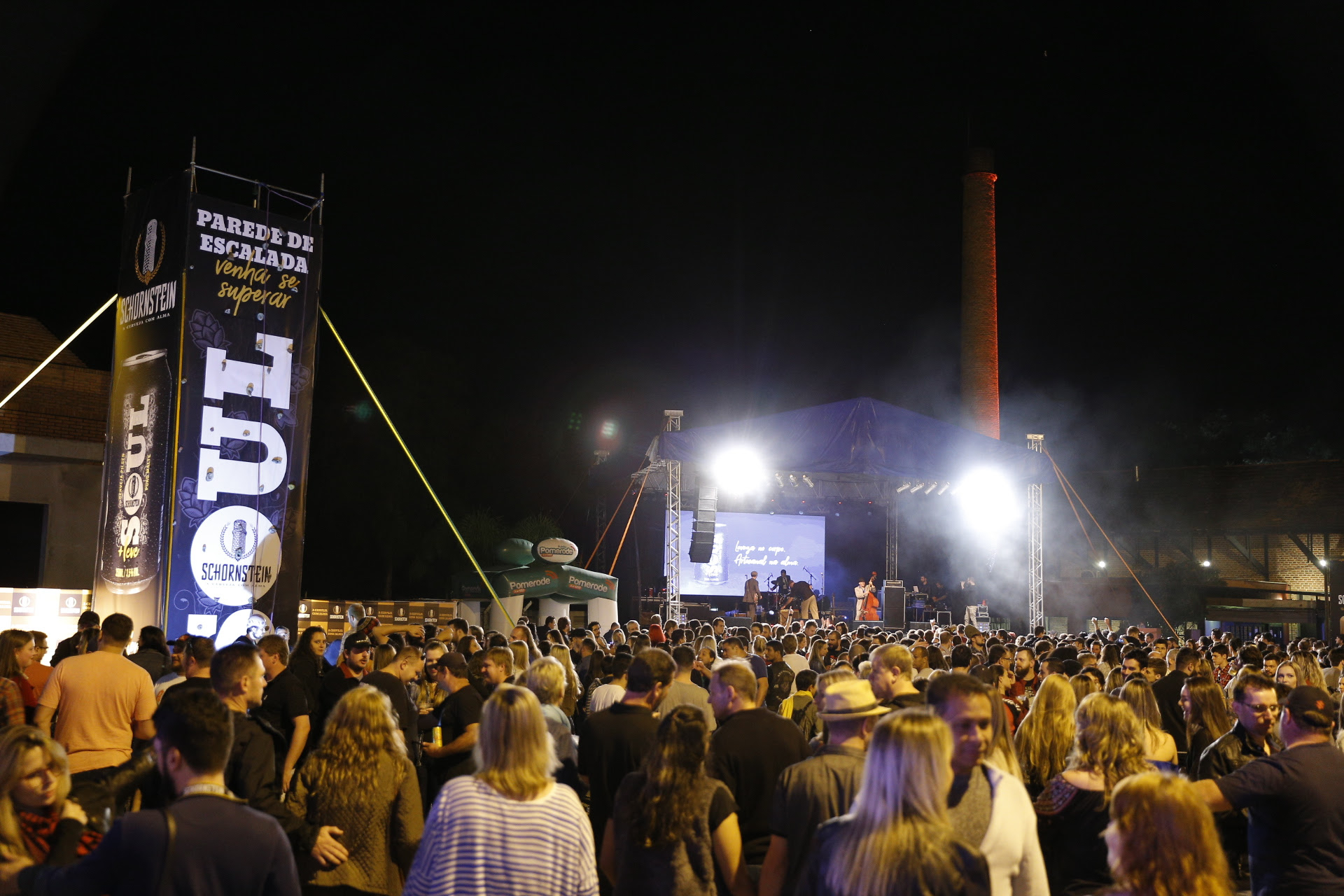 A Rua Hermann Weege, em Pomerode (SC), onde estão a antiga e a recém-inaugurada loja da Schornstein, foi tomada por uma multidão neste sábado (3). Cerca de 10 mil pessoas passaram por lá desde o início da manhã para aproveitar as atrações do Schornstein Festival. Sete bandas subiram ao palco, mais de 20 opções gastronômicas foram servidas e o consumo de chope passou de 7 mil litros.