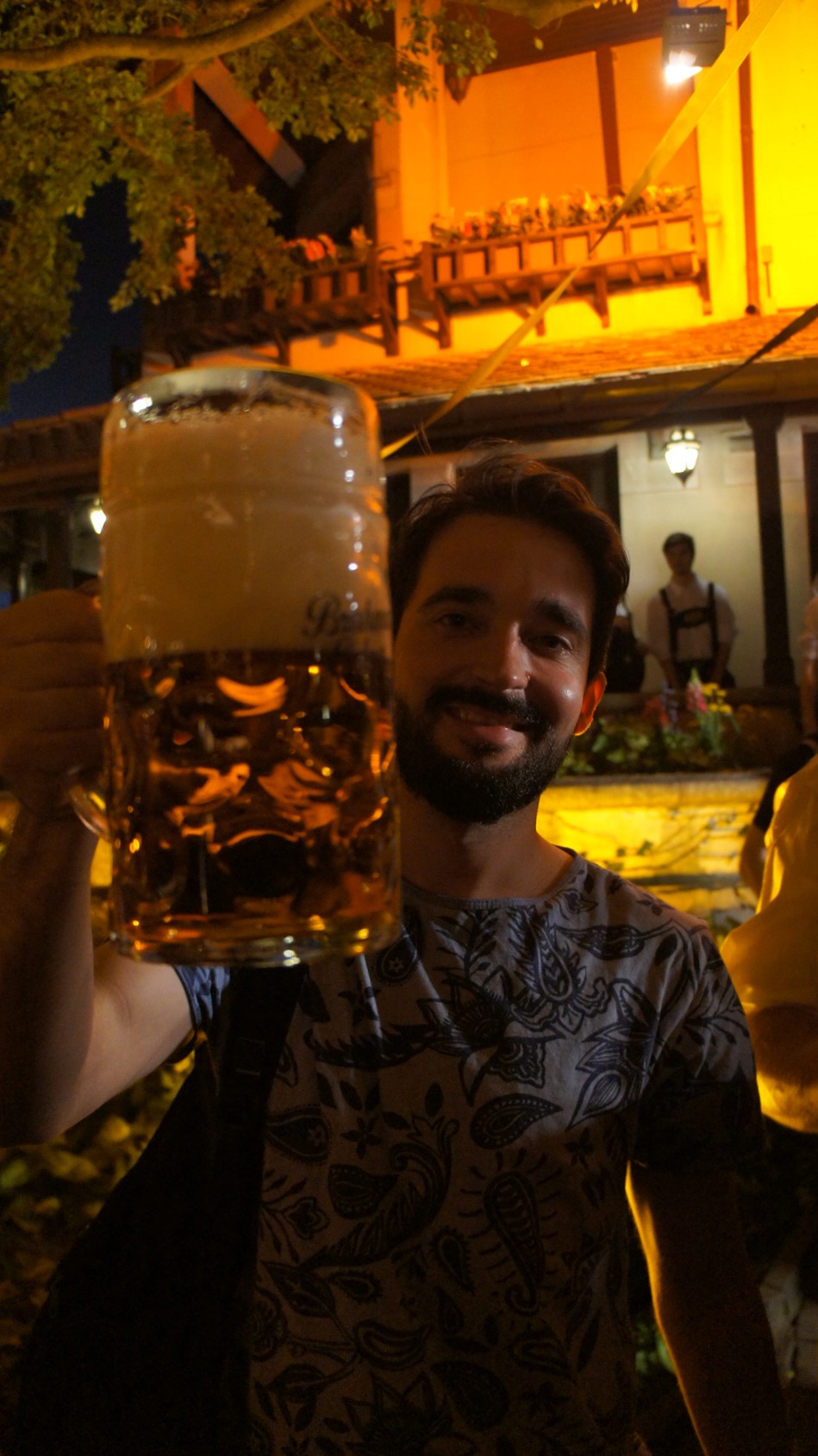 O mestre cervejeiro da Brahma, Luciano Horn, fez as honras e conduziu a tradicional cerimônia de abertura da Oktoberfest abrindo o primeiro barril de chopp da novíssima cerveja da marca. E advinha quem pegou uma das primeiras canecas? SIM! EU!