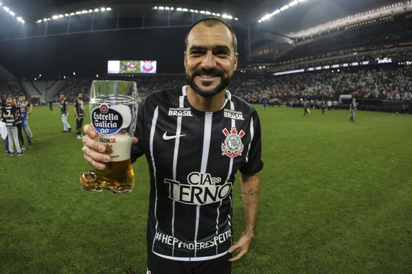Assim que o árbitro apitou o final da partida e a torcida entrou em êxtase pelo sétimo título brasileiro do Corinthians, os jogadores foram surpreendidos por taças comemorativas cheias de cerveja em pleno gramado. Foi uma ação da Estrella Galicia, cerveja oficial do Timão, que ativou seu patrocínio com a Estrella Galicia 0,0, produto sem álcool de sua linha.