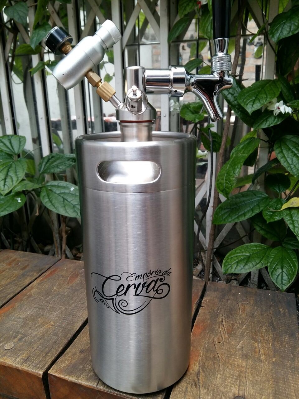 O growler do Empório da Cerva, todo feito em alumínio, tem capacidade de armazenamento de 3,6 litros de bebida e custa R$ 550. “Nosso growler permite tirar em média treze chopes”, diz a chef Patricia Horta. “É praticamente uma mini chopeira”, finaliza.
