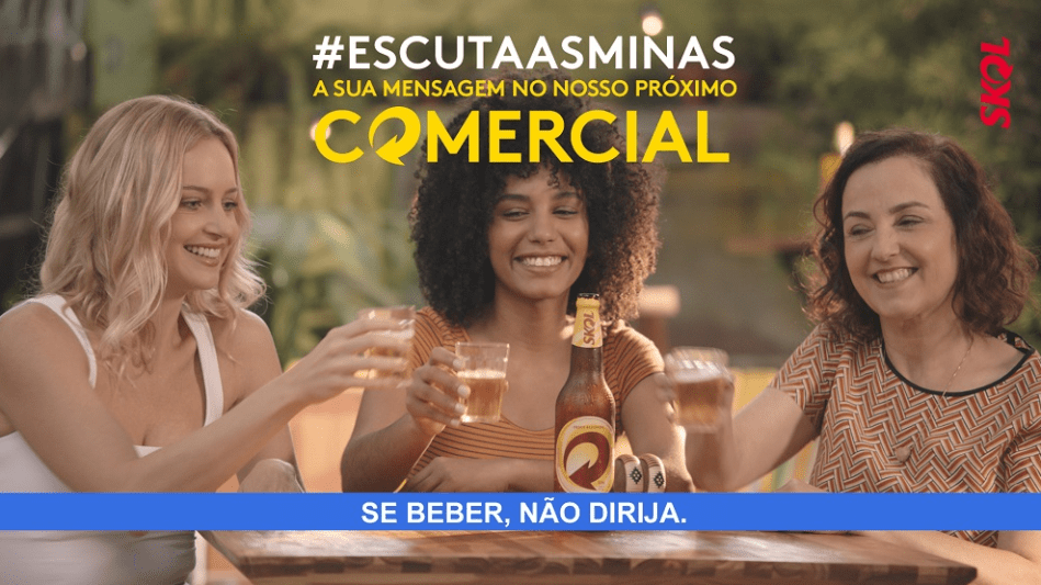 Em um movimento completamente interativo em suas redes, SKOL vai literalmente ouvir. Será aberto um espaço para que todas as mulheres possam dar suas opiniões e dizer o que gostariam de dizer em propagandas de cerveja. Estas opiniões se transformarão em um novo filme, que vai ao ar na TV aberta no dia 25 de março, e que levará frases das participantes, amplificando a voz dessas mulheres, para que o Brasil inteiro escute as minas.
