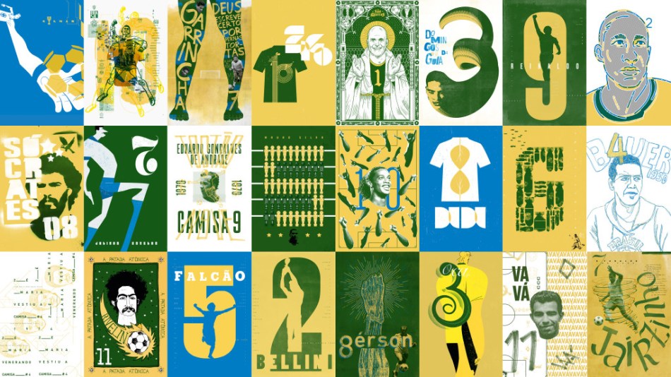 Ilustrados por 19 diretores de arte, os pôsteres exibem jogadores de diferentes épocas, como Leônidas da Silva, Nilton Santos, Garrincha, Zico e Taffarel. Além dos cartazes, filmetes animados serão exibidos via Eletromidia.