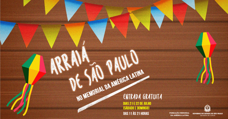 A Festa Julina deste ano no Memorial da América Latina acontece dias 21 e 22 de julho (sábado e domingo) e é mais uma atração para famílias, casais e amigos que procuram um ambiente alegre e descontraído para aquecer o inverno. O evento gratuito, que acontece na Praça da Sombra, fica aberto ao público das 11 às 21 horas.