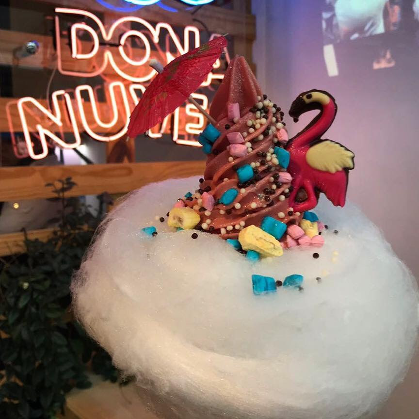 Um delicioso e colorido Flamingo de chocolate ao leite, acompanhado por balas de coco, balinhas de tutti-frutti e muito glitter colorido. Tudo isso lindamente montado sobre um sorvete cremoso e uma delicada nuvem de algodão doce… Ficou com água na boca só de imaginar, não é? Então, corra para a Dona Nuvem, a sorveteria mais querida, animada e criativa de São Paulo, que criou essa edição limitada de sorvete temático para quem quer aliar muita diversão a um produto de altíssima qualidade!