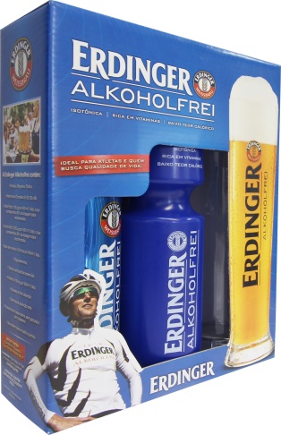 Uma cerveja não alcoólica, isotônica, rica em vitaminas e com poucas calorias. Sim, essa bebida existe, é a Erdinger Alkoholfrei e a responsável por trazer essa novidade para o Brasil é a Bier & Wein Importadora. O kit possui uma lata da bebida de 500 ml, um squeeze, além de um copo exclusivo. O preço sugerido do kit é de R$80,00. O teor alcoólico é de 0,4% e tem o mesmo teor de diversos sucos de fruta, por exemplo. É ideal para refrescar, não apenas esportistas, mas também gestantes e quem busca qualidade de vida.