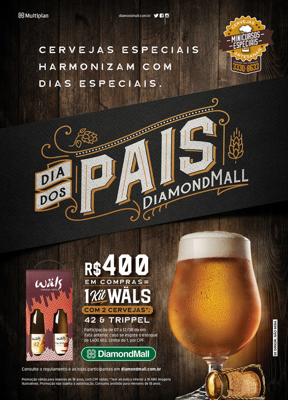A campanha de marketing do shopping, produzida pela agência Lápis Raro, traz em destaque os kits de cervejas que serão distribuídos com 400 reais em compras. As peças gráficas poderão ser vistas pelos corredores do shopping. No DiamondMall é assim: pais e filhos têm muitos motivos para brindar e comemorar. Diariamente.