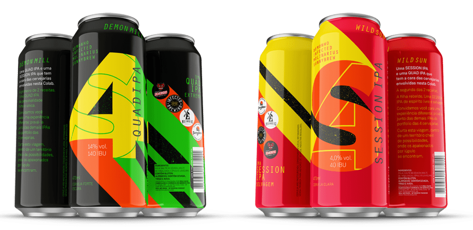 A DEMON MILL traz o 4 em destaque e a letra S, de Session, dentro dele – da base da receita que originou a Quad, originamos a Session. Já a WILD SUN traz a letra S em destaque e o número 4 dentro dele, fazendo referência à sua irmã mais robusta. Acompanhem nossas redes sociais e saiba mais sobre estas novidades que prometem movimentar o mercado de IPAs.