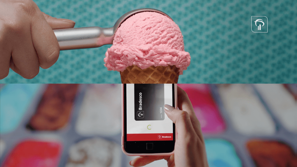 Além de Samsung Pay, Apple Pay e Google Pay, os pagamentos podem ser feitos via QR Code, facilidade disponível em qualquer modelo de celular com câmera. Essa novidade é destacada no filme, mostrando a democratização do serviço oferecido pelo Bradesco.