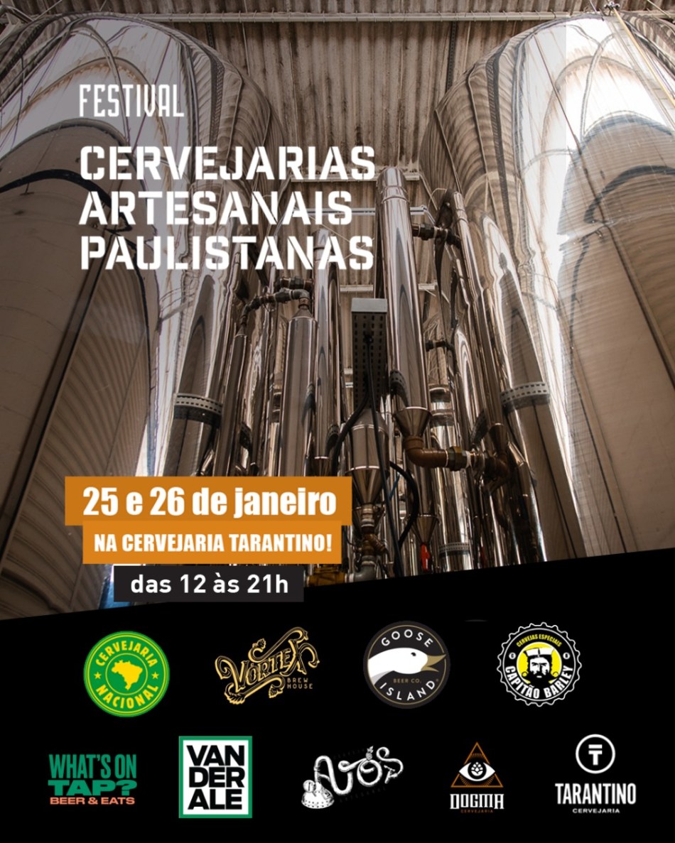 Inaugurada em setembro de 2018 a Cervejaria Tarantino, localizada no Bairro do Limão na Zona Norte, em comemoração ao Aniversário de São Paulo, juntamente com outras 8 cervejarias com fábrica estabelecida na cidade irá realizar nos dias 25/01 e 26/01 o Festival das Cervejarias Paulistanas. As cervejarias participantes são: Nacional, Vortex, Goose Island, Capitão Barley, WOT, Van Der Ale, Avós, Dogma e Tarantino.