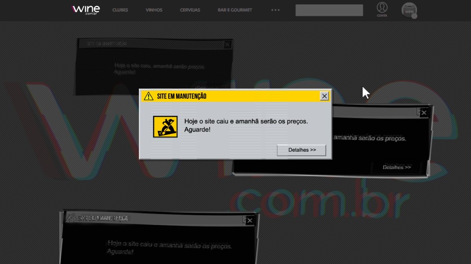Enquanto o site estava fora do ar, mensagens como: “O site caiu, mas os preços também irão cair. Aguarde!” estavam presentes para os consumidores que tentaram acessar. A campanha ainda conta com posts nas redes sociais e peças digitais em grandes portais. Para Alexandre Magno, diretor de e-commerce da Wine.com.br, essa é uma forma de oferecer oportunidades incríveis e ainda entreter e engajar os clientes. “A Wine.com.br quer cada vez mais interagir com seus sócios com brincadeiras leves e interativas, sempre com a finalidade de divertir o público e oferecer vinhos e descontos imperdíveis”, completa o executivo.