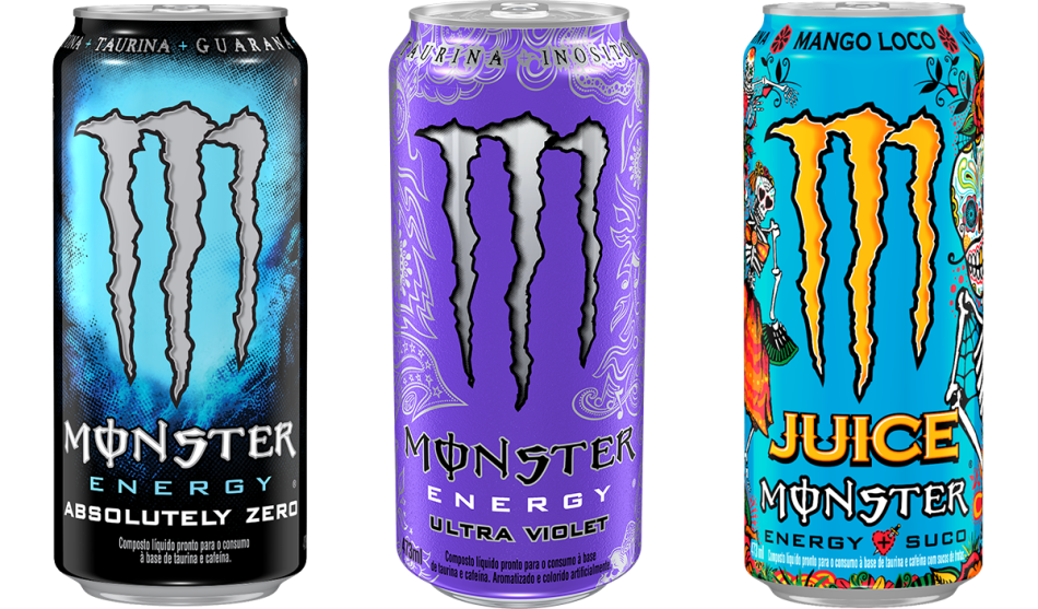 Monster Mango Loco traz em sua lata cores fortes e desenhos que rementem ao Dia de Los Muertos, possuindo 16% de suco de manga e a mistura especial de energético da marca. Já o Monster Absolutely Zero é a opção com menos calorias da categoria, apenas 8 kcal por lata e zero açúcar, e, por fim, Monster Ultra Violet também oferece menos calorias, com 10 kcal por unidade, além de oferecer a mistura do sabor cítrico com um mix de uva em uma lata especial que remete aos anos 70.