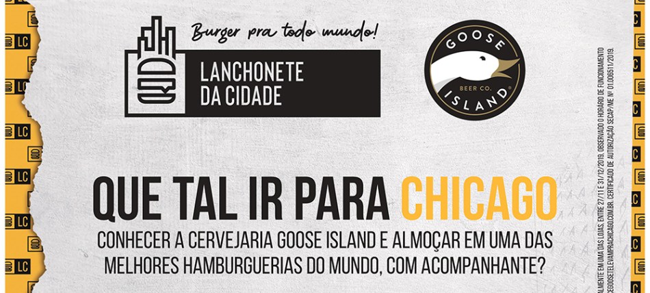 Criada pela Score Group, agência líder no segmento de Shopper Experience, a nova campanha “Lanchonete da Cidade e Goose Island te levam para Chicago”, proporciona para um consumidor e acompanhante, tour pela cidade de Chicago, nos Estados Unidos, com direito a conhecer a cervejaria Goose Island e almoço no Au Cheval, uma das mais conhecidas hamburguerias do mundo.