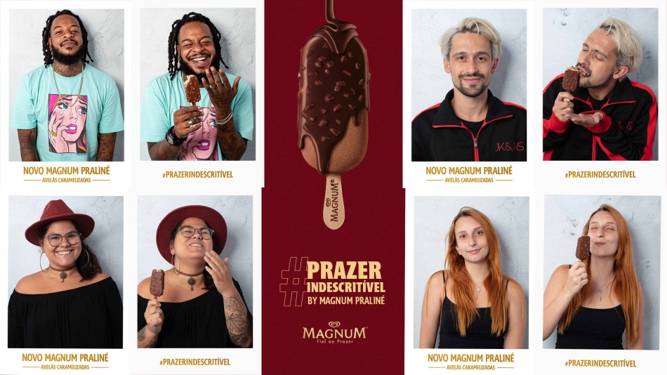 “Prazer Indescritível”. O nome dado à campanha é o que Magnum espera que as pessoas sintam após provarem o novo Magnum Praliné Avelãs Caramelizadas. Quem passar pela estação Pinheiros, na Linha Amarela do Metrô de São Paulo, entre os dias 27 e 1 de fevereiro, poderá encontrar o renomado fotógrafo brasileiro Marcos Alberti captando imagens de consumidores antes e depois de degustarem a novidade da marca, um cremoso sorvete sabor avelã coberto com chocolate belga e avelãs caramelizadas.