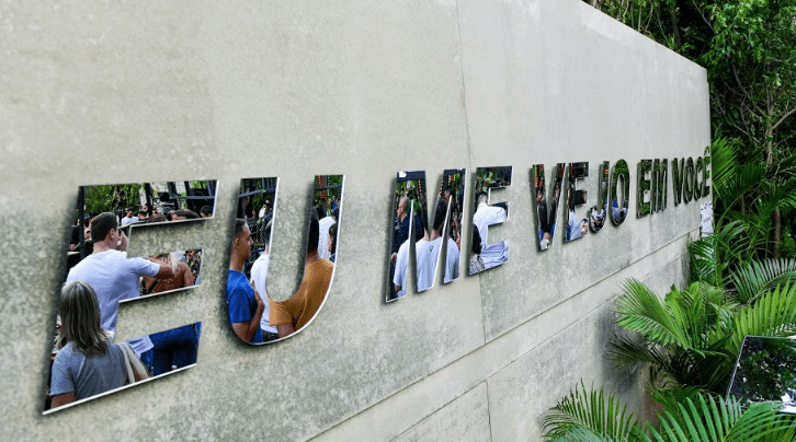 Um túnel verde localizado na entrada, assinado pelo multiartista Felipe Morozini, provoca reflexão e curiosidade. “Eu era outro lugar”, reflete sobre as florestas que existiam ali, antes das grandes cidades.