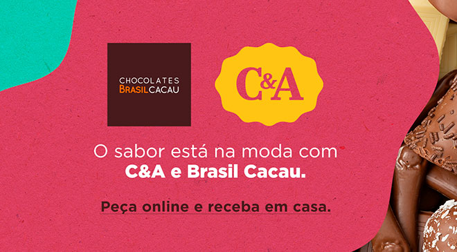E para celebrar essa parceria, os clientes que comprarem pelo e-commerce da marca de chocolates ganharão cupons na loja virtual da C&A, assim como os fãs de Brasil Cacau também terão descontos no site e app. A promoção é válida entre os dias 09 e 23 de junho e o cupom pode ser utilizado até o dia 30. Para participar, basta realizar compras nas regiões atendidas pelo e-commerce da Brasil Cacau.