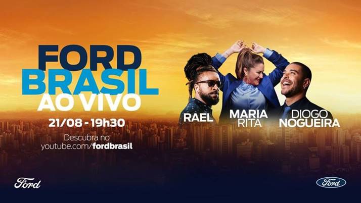 A Ford promove um grande show no próximo dia 21 de agosto (sexta-feira), às 19h30, aberto ao público de todo o país com transmissão ao vivo pelo canal da marca no Youtube. Intitulada Ford Brasil ao Vivo, a live traz um encontro histórico de três grandes astros da música brasileira: Maria Rita, Diogo Nogueira e Rael, com um repertório inédito e novas parcerias.