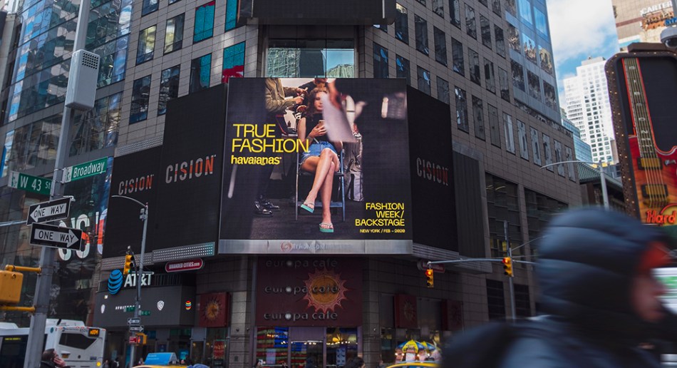 A marca visitou o backstage de uma das principais semanas de moda, no começo desse ano, e descobriu a queridinha das modelos, a Havaianas Slim Flatform. O flagra virou uma nova campanha da marca, mostrando Havaianas como um ícone de moda para todo o mundo, com o conceito “True Fashion”. A campanha, criada pela AlmapBBDO, circular no Brasil, Estados Unidos, Ásia e Europa ao longo dos próximos meses. Times Square, por exemplo, já recebeu uma peça especial de OOH.
