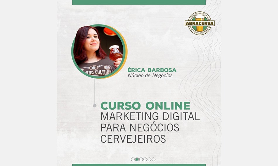 Os profissionais e amantes da cerveja já podem se preparar para uma ótima oportunidade de atualização. Depois do sucesso da primeira turma do curso de Tributação Cervejeira, a Associação Brasileira de Cerveja Artesanal (Abracerva) movimenta sua grade de 2021 com a chegada de mais uma novidade on-line: o Curso de Marketing Digital para Negócios Cervejeiros, ministrado por Érica Barbosa, integrante do Núcleo de Negócios da entidade. Com carga horária total de 8 horas, o curso on-line é dividido em dois módulos, que acontecem ao vivo, nos dias 20 e 21 de fevereiro, das 9h às 13h.
