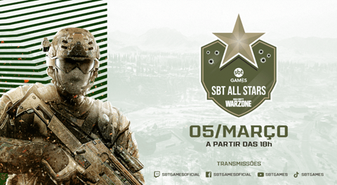 O SBT Games realiza no dia 5 de março, a partir das 18h, o SBT ALL STARS CoD: Warzone. A competição irá colocar os maiores streamers de CoD: Warzone do Brasil para se enfrentarem em trios. O SBT Games convidou 37 capitães de time e deu liberdade para que eles escolhessem seus companheiros de squad. Cada capitão também será responsável por transmitir ao vivo sua tela durante a competição. TheDarkness, Stolen e Zigueira são apenas alguns dos capitães de squad dessa competição. Apenas o próprio SBT Games fará a exibição completa do campeonato, inclusive com a presença de casters para deixar a disputa ainda mais animada. Neves e Ogro serão os casters oficiais do SBT ALL STARS CoD: Warzone realizando a narração e os comentários, respectivamente.