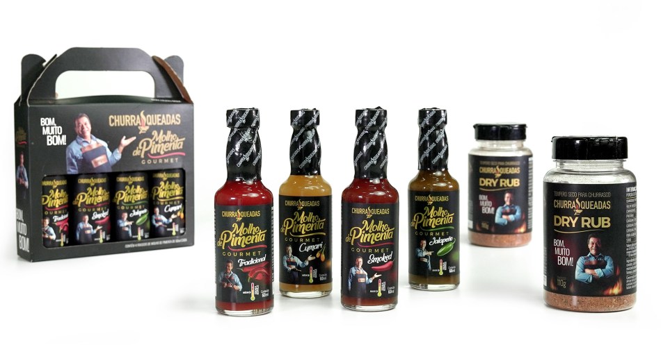 No comando do Churrasqueadas – maior canal sobre churrasco das redes sociais no Brasil que neste ano completa 5 anos – o churrasqueiro José Almiro complementa as suas receitas saídas da brasa e acompanhamentos variadíssimos com muita criatividade quanto o assunto é: pimenta! E para compartilhar esse seu gosto peculiar com os mais de 6 milhões de seguidores entre YouTube, Facebook e Instagram, o Churrasqueadas desenvolveu, em parceria com a empresa RPJ Alimentos, um kit com quatro exclusivos molhos de pimentas puras e um tempero seco (dry rub):